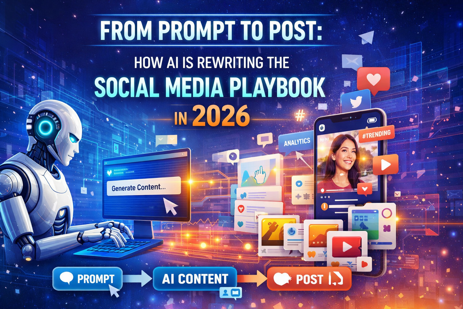 Welcome to the era of “prompt to post,” where a single well-crafted instruction can generate high-performing content, optimize distribution, and even predict engagement outcomes. In this article, we’ll explore how AI is transforming social media marketing, what it means for brands and marketers, and how you can stay ahead in this new playbook.